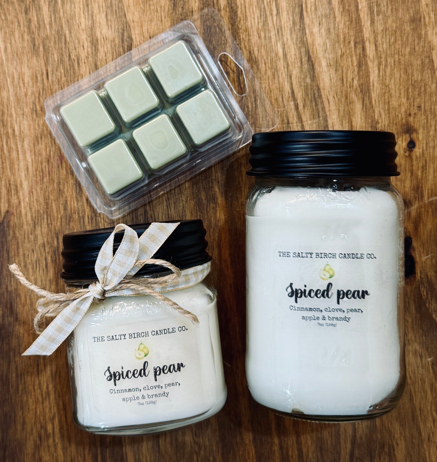 Spiced pear combines the fresh, fruity notes of pear and apple with the warm, spicy essence of cinnamon and clove. The addition of brandy and sugar adds a touch of indulgence and sophistication, while the cider brings a cozy, seasonal quality to the fragrance. Overall, it evokes a sense of comfort and festivity, perfect for creating a welcoming atmosphere.